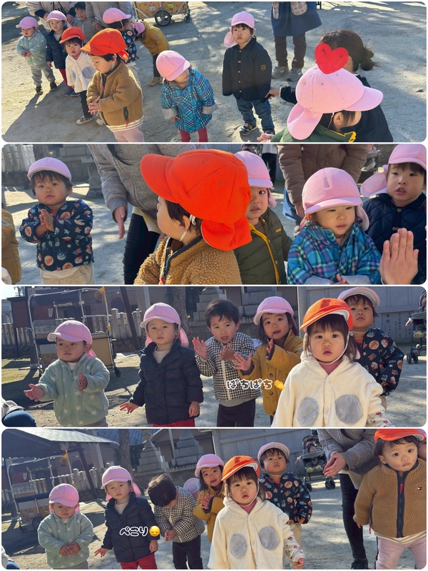 | あけましておめでとうございます🎍 今年もよろしくお願い致します🙂↕️ 昨日は初詣に行きました! 行く前からうめぐみさんは 「早く行こうよ!」「お願い事何にしようかな?」 すごく楽しみにしていました☺️ 参拝も先生の真似をして上手にできました! うめぐみさんが今年も1年健康で たくさん遊べますように😊!! |