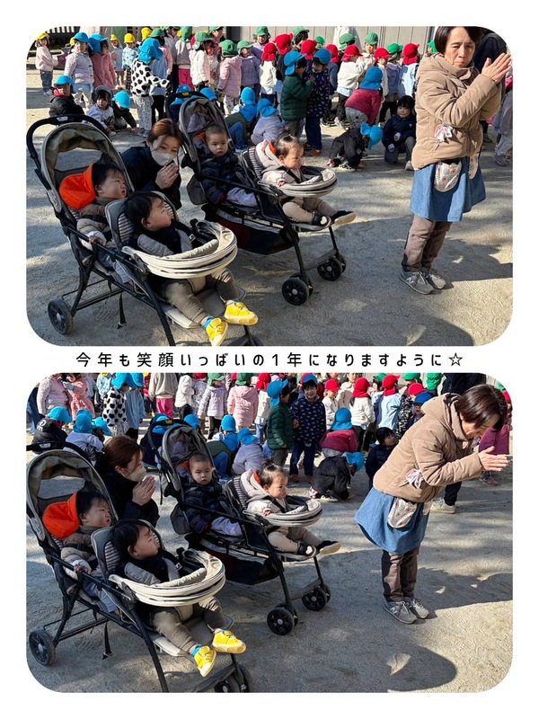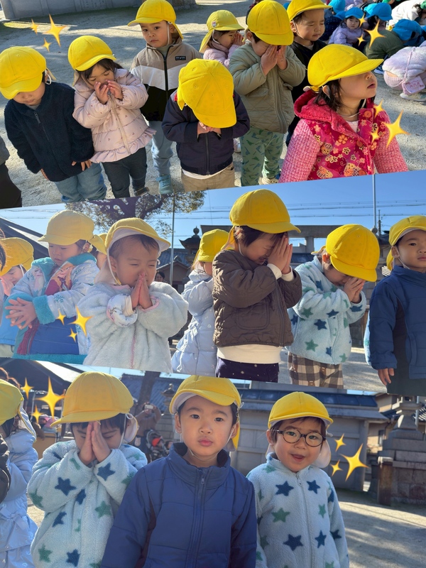 | あけましておめでとうございます🎍 6日に初詣に行きました!! 神社まで、少し距離はありましたが子供達は頑張って歩くことができました✨ お参りしている姿がとってもかわいいです♡ きいぐみで過ごすのも残り3ヶ月、、 楽しい思い出たくさん作って過ごしていきたいと思います!! 今年もよろしくお願いします^_^ |