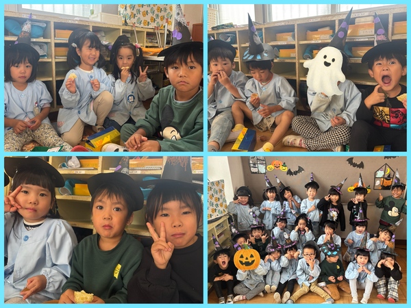 | 10月31日にハロウィンパーティーをしました🎃 うめぐみさんは魔女の帽子を被って 魔女に変身しました🧙♀️ 「お菓子をくれないとイタズラしちゃうぞ〜!」 とノリノリで楽しんでくれました🥰 先生たちからお菓子をもらって みんなでお菓子を食べました! |