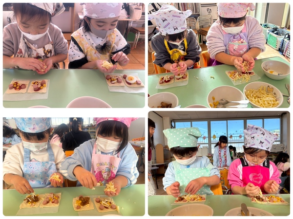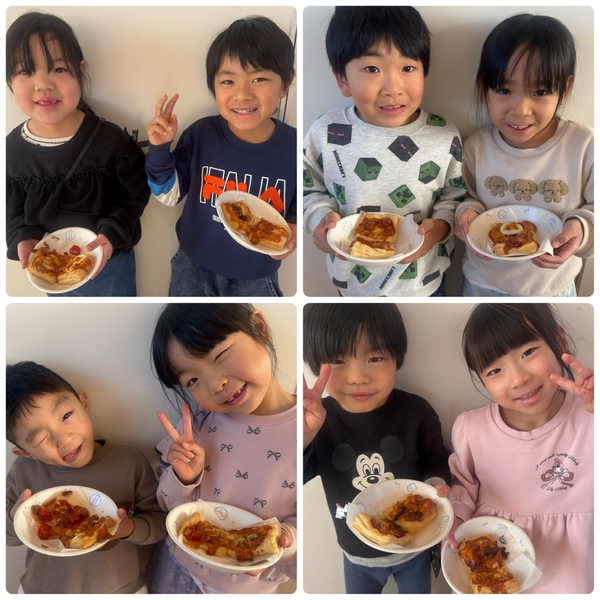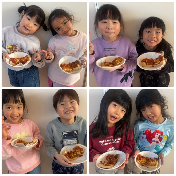 | ピザ早く作りたいーーー‼︎いつ?今日?まだ? と毎日楽しみにしていた子どもたち‼︎ 包丁でウィンナーを切ってから テリヤキにするー‼︎ コーンとチーズにするー‼︎と 盛り付けを楽しんでいました☺︎ おかわりもして沢山食べていました♡ |