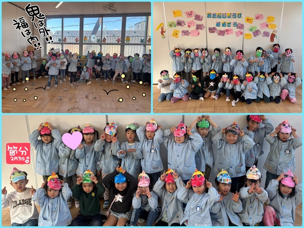 最後は 「おにはそとぉーー!ふくはうちーー!」 と豆を投げ、みんなで協力して鬼を退治することが できました🤩🌟